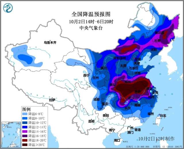 10月2日中央气象台发布寒潮蓝色预警。这是自2010年(中央气象台正式启用预警发布机制)以来,下半年最早发布的寒潮预警。