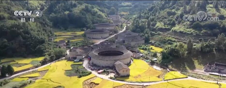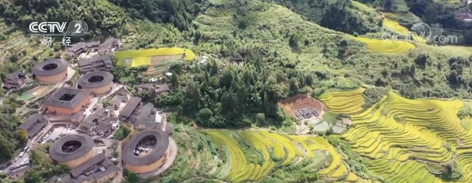 走进南靖县曲江村,放眼望去,金黄色的稻田绵延起伏,稻穗随着秋风摇曳,掀起层层稻浪。在稻田中,星星点点分布着的是福建传统民居土楼,土楼有方也有圆,古朴而奇特,与梯田共同构成一幅乡村秋收图。