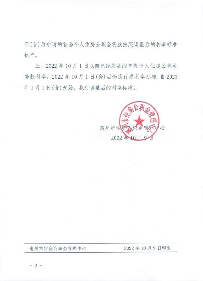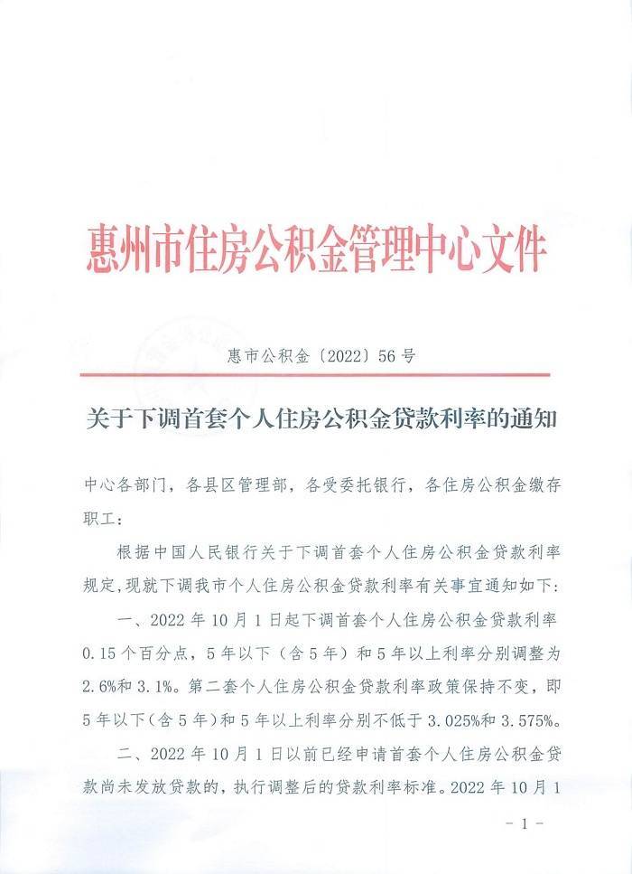 国庆假期刚过,惠州市住房公积金贷款利率利好政策正式出炉。10日,南方日报、南方+记者从惠州市住房公积金管理中心获悉,继10月1日该中心接受采访时表态跟进落实央行下调首套个人住房公积金贷款利率政策后,9日,中心正式印发《关于下调首套个人住房公积金贷款利率的通知》,在重申公积金贷款利率0.15个百分点的同时,对涉及贷款申请客户时限也予以了明确。