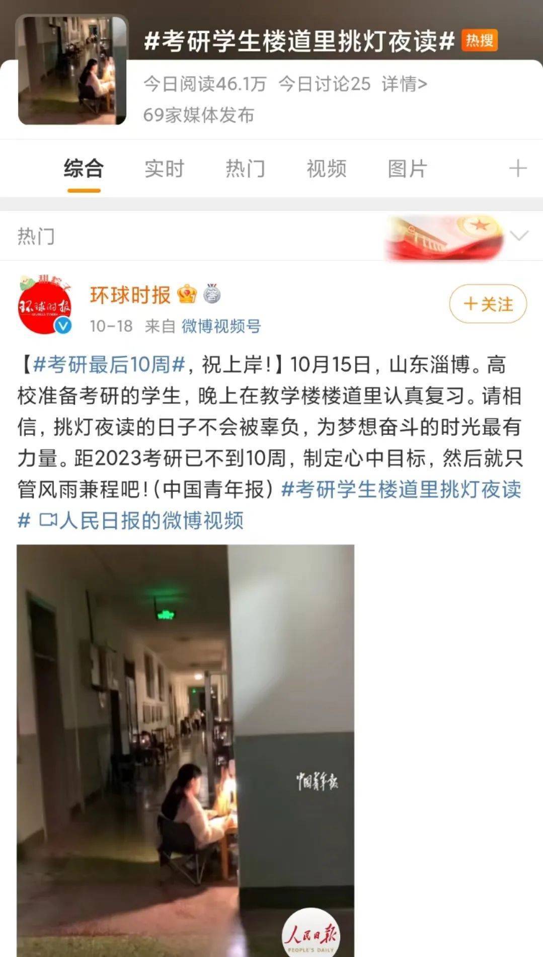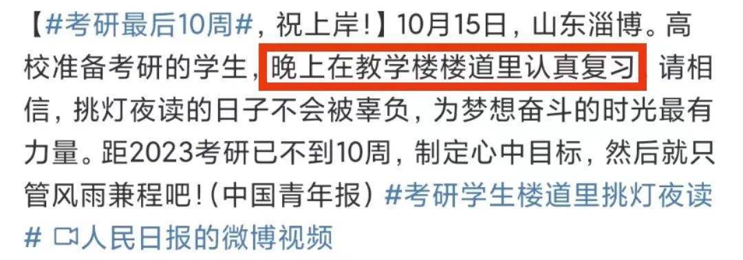 无独有偶,一周后,#考研学生楼道里挑灯夜读#又上热搜。