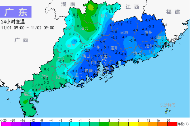 深圳今天的平均气温比昨天降低了4°C左右,今天的气温将在18-21℃徘徊,日温差小,加上有风有雨,体感会比气温显示的更加阴凉。