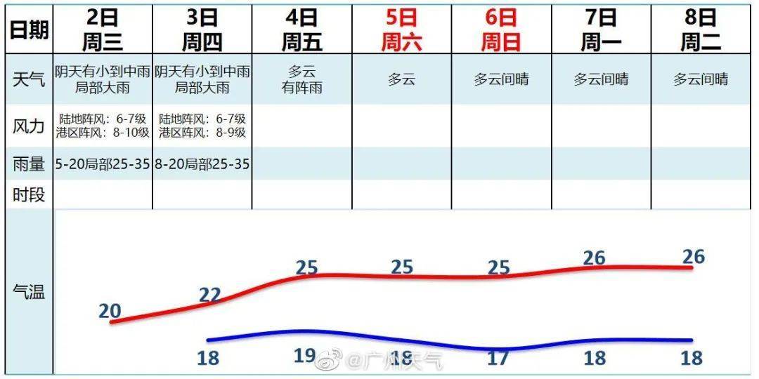 2日-3日,南部沿海市县有大雨局部暴雨并伴有6级~8级阵风,其余市县有阵雨。
