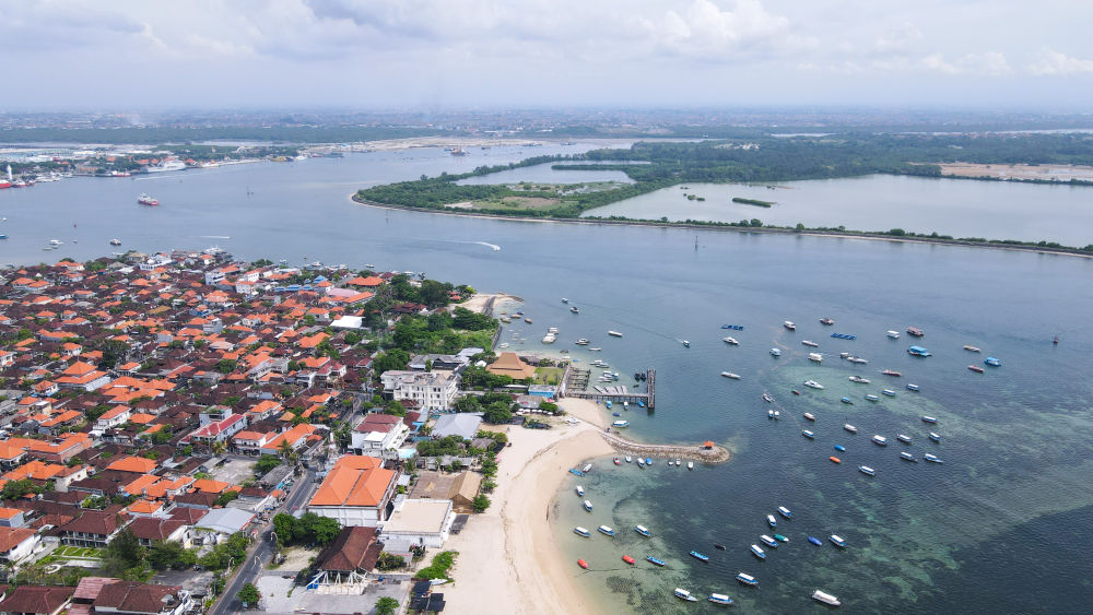 这是11月12日在印度尼西亚巴厘岛拍摄的丹戎伯诺阿海滩风光(无人机照片)。新华社记者 徐钦 摄