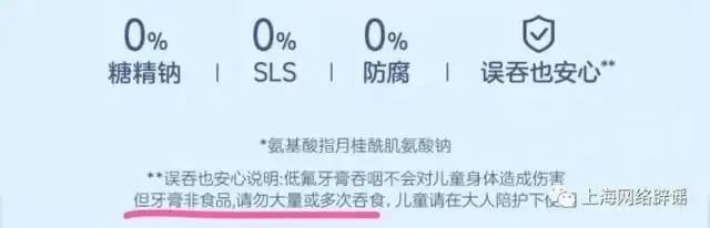 ▲网络平台上有大量儿童牙膏标注“可吞咽”。