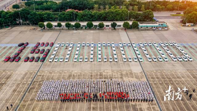 12月11日,兴奋的东风日产公司甚至在广州基地花都二工厂的广场上,用汽车摆出了一个“15000000”的巨大数字车阵。