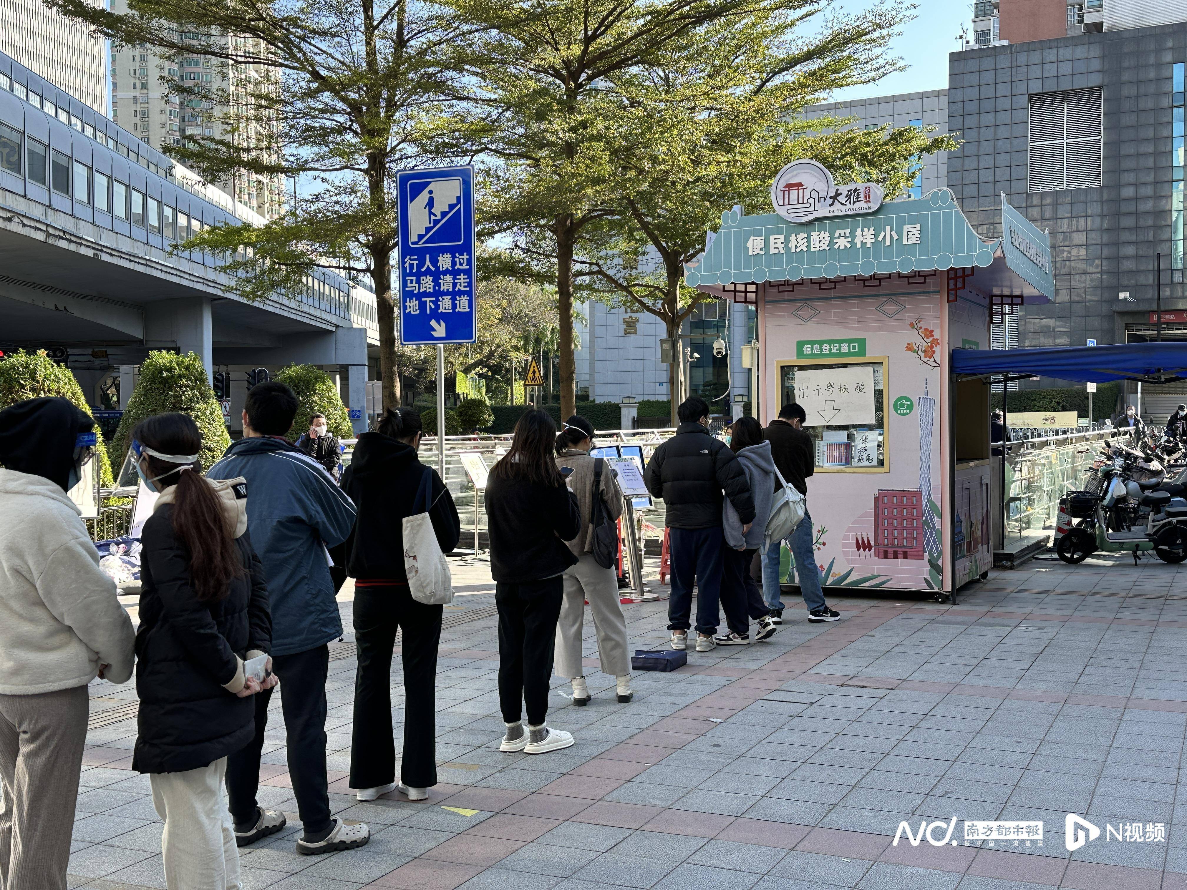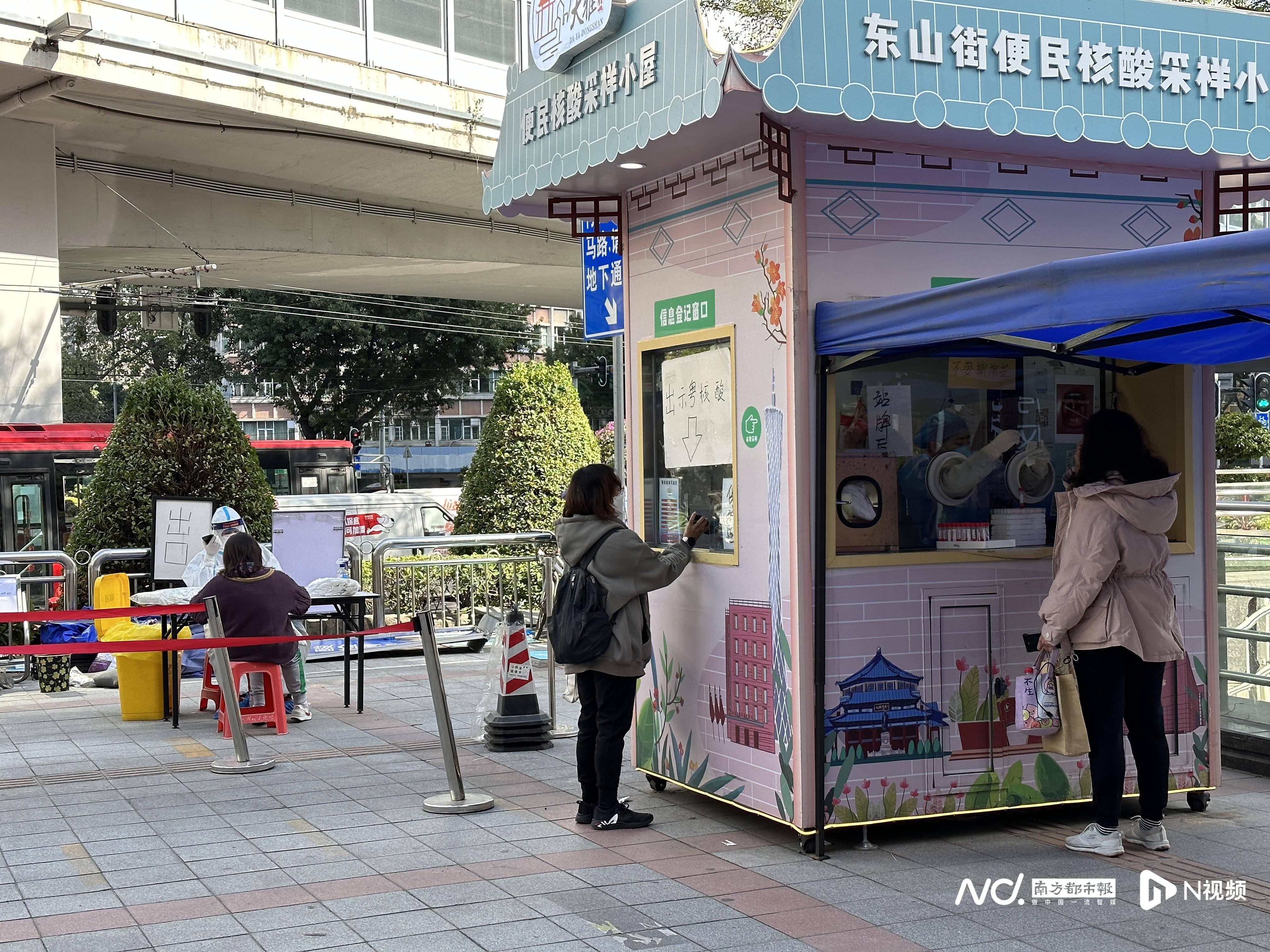 上午9点56分,南都记者来到越秀区东山口F出口处的核酸检测点,此时还未开始检测,但检测队伍已排至东山口(东华北路)公交站处,队伍已有近百米长。