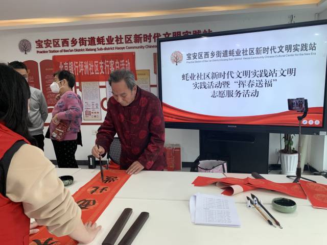 日前,蚝业社区新时代文明实践站联合辖区企业北京银行开展文明实践活动暨“挥春送福”志愿服务活动,活动由银行组织文学艺术创作协会书法家为居民写春联、送福字,共计80人次参与。活动旨在弘扬和传承中华优秀传统文化,营造社区内的喜庆祥和的节日氛围。