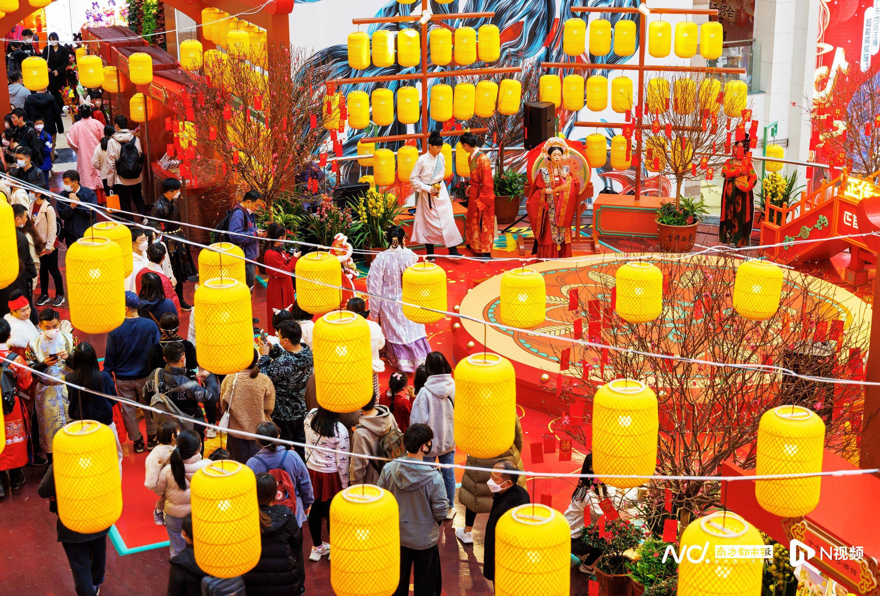 1月19日,“正佳大唐千灯会”集合国潮、诗意、浪漫、艺术等多重元素,多样丰富的活动为商超吸引大量客流。南都拍客 张业斌 摄