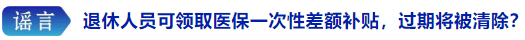 真相:近日,关于“退休人员领取医保一次性差额补贴”的传言再起。经核查,“医保一次性差额补贴”的说法与事实不符,传言中涉及的北京、上海、浙江、济南等地均无“医保一次性差额补贴”的政策。相关工作人员解释,网传说法可能是将“医保年度定额资金”误解为“差额补贴”。目前,个人从医保得到的资金只有三方面费用:一是医保划入个人账户的资金;二是医保报销回来的(个人与医疗机构发生的手工结算费用)医疗费用;三是实行职工大病保险制度的地方,大病保险报销回来的费用。国家职工医疗保险实行“社会统筹基金”+“个人账户”制度。个人账户归个人所有,实行长期累计。如职工和退休人员不幸去世,其生前个人账户的剩余款由子女继承,不会被“直接清除”。(来源:经济日报)