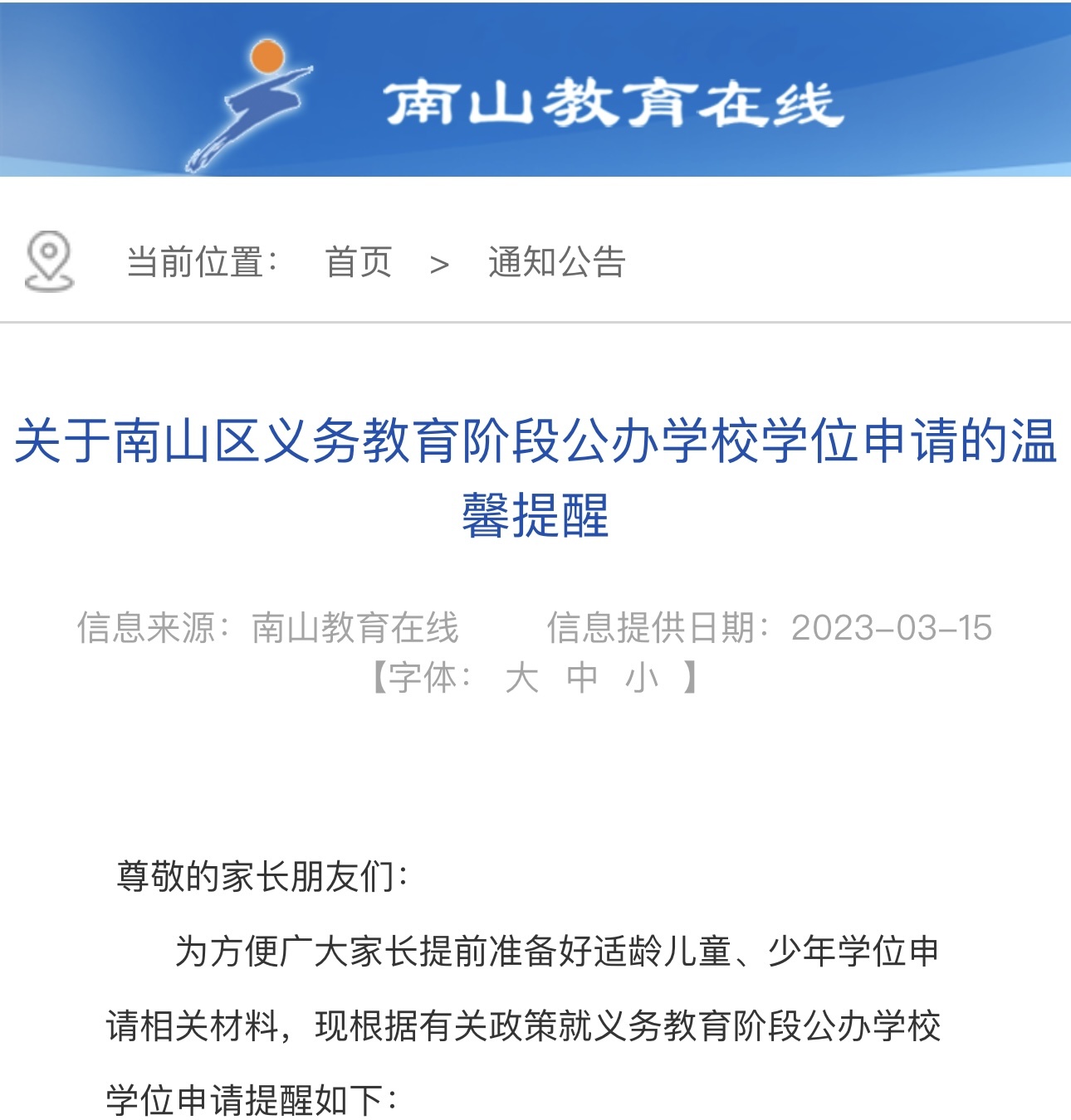 本提醒最终解释权归南山区教育局基础教育科。感谢各位家长对南山教育的支持!