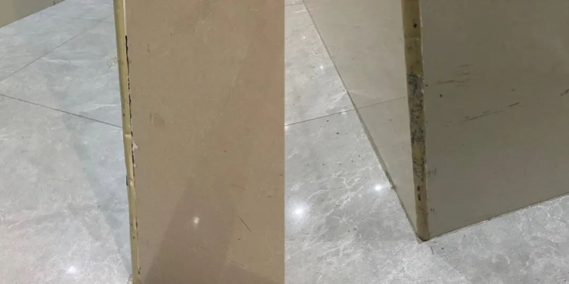 奥一新闻记者通过手机软件测量发现,该通道的宽度仅为1.13米,而在通道拐角的地脚线上已有不少明显的剐碰痕迹。