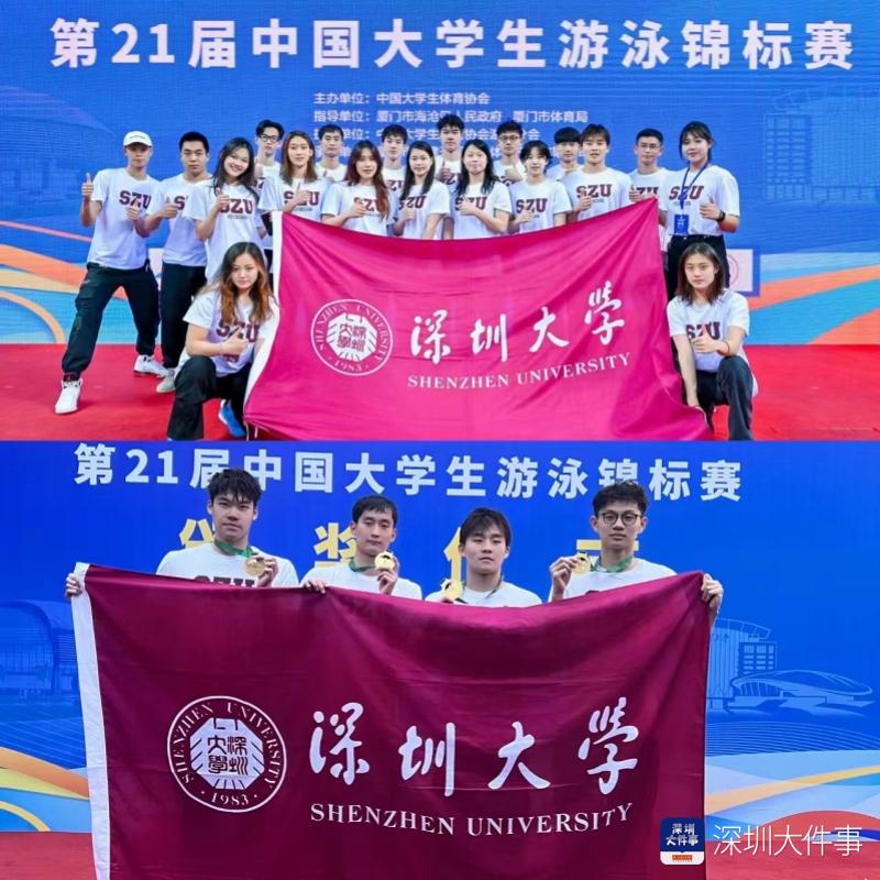 近日,第21届中国大学生游泳锦标赛在厦门落下帷幕。经过4天的激烈角逐,深圳大学游泳队斩获13金5银5铜,打破8项中国大学生游泳丁组(专业组/最高水平组)纪录,获男子团体、女子团体、团体总分三项冠军。