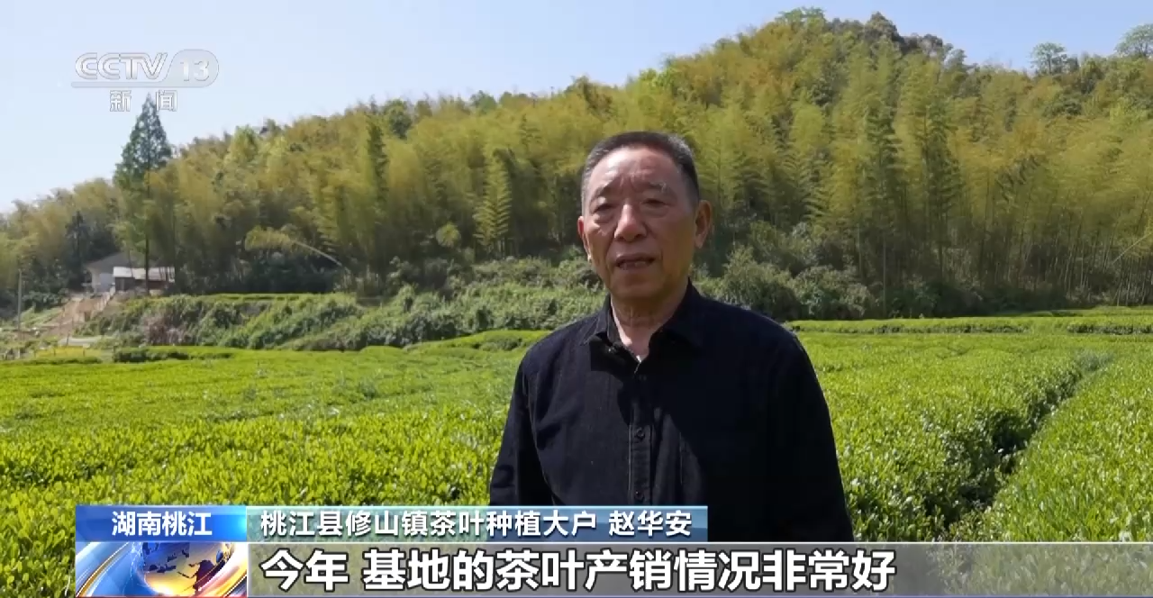 桃江县修山镇茶叶种植大户 赵华安:今年,基地的茶叶产销情况非常好,预计可加工高端绿茶超过3000斤,大众绿茶100万斤以上,这又将会给周边的茶农带来一个好的收成。
