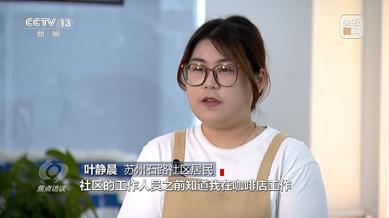 苏州石路社区居民 叶静晨:社区工作人员之前知道我在咖啡店工作,但我不是专业的咖啡师,后来通过社区介绍,推荐我参加专业的咖啡技能培训,这样我有了证书,也有了技能,工作机会就变多了。后来服务站帮我对接了五六家单位,我通过面试应聘,在这当上了咖啡师。