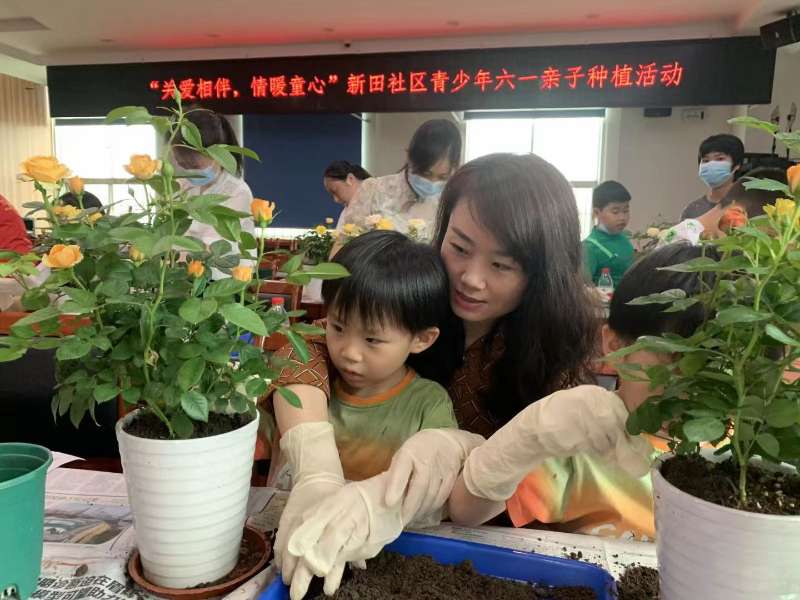 在六一节来临之际,福海街道新田社区工作站开展了“关爱相伴,情暖童心”新田社区青少年六一亲子种植活动,由亲子共同栽培多彩玫瑰,一起感受生命的绚丽多彩,为热爱孩子的家庭提供一个轻松、自然、快乐的交流平台,陪孩子们的童年度过一次珍贵难忘的六一儿童节。活动吸引了50对亲子家庭参与,反响热烈。