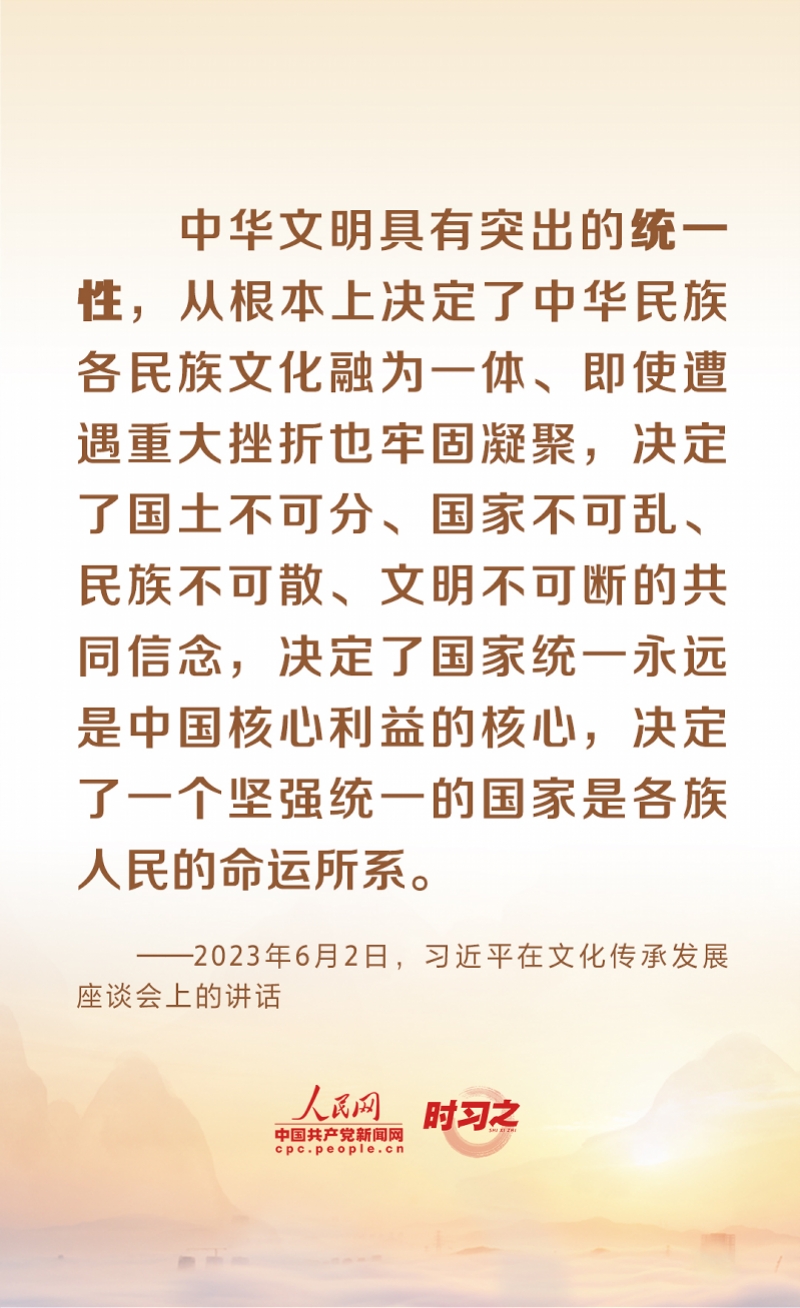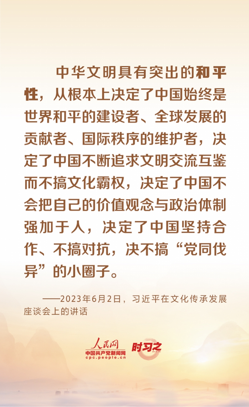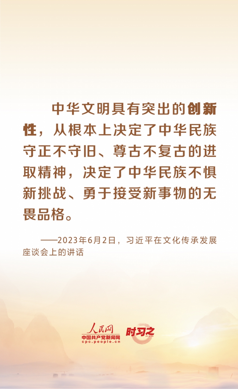 “中华优秀传统文化有很多重要元素,共同塑造出中华文明的突出特性。”2023年6月2日,中共中央总书记、国家主席、中央军委主席习近平在北京出席文化传承发展座谈会并发表重要讲话。习近平对中华文化传承发展的一系列重大理论和现实问题作了全面系统深入阐述,指出了中华文明的五个突出特性。