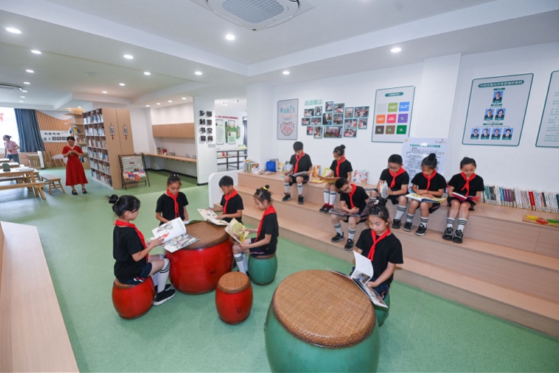 6月13日,周巷镇精忠小学的学生们在慈溪市周巷镇万安庄村的乡村书屋内看书,该村位于浙江省首批小城市培育试点镇、宁波市卫星城市培育试点镇——慈溪市周巷镇,先后获得全国文明村、国家森林村庄、全国民主法治示范村等荣誉称号。