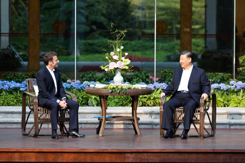 △2023年4月7日,习近平主席同法国总统马克龙在广东省广州市松园临水而坐,观景品茗,纵论古今。