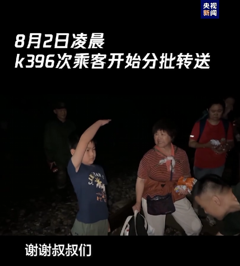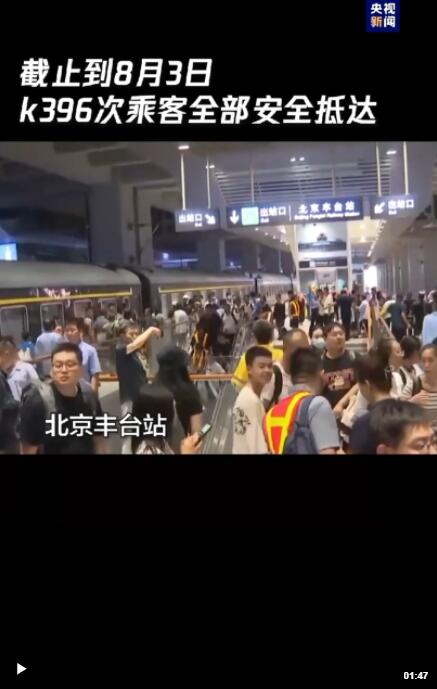 截止到8月3日凌晨,因暴雨受困三天的K396次列车旅客全部安全抵达北京丰台站。