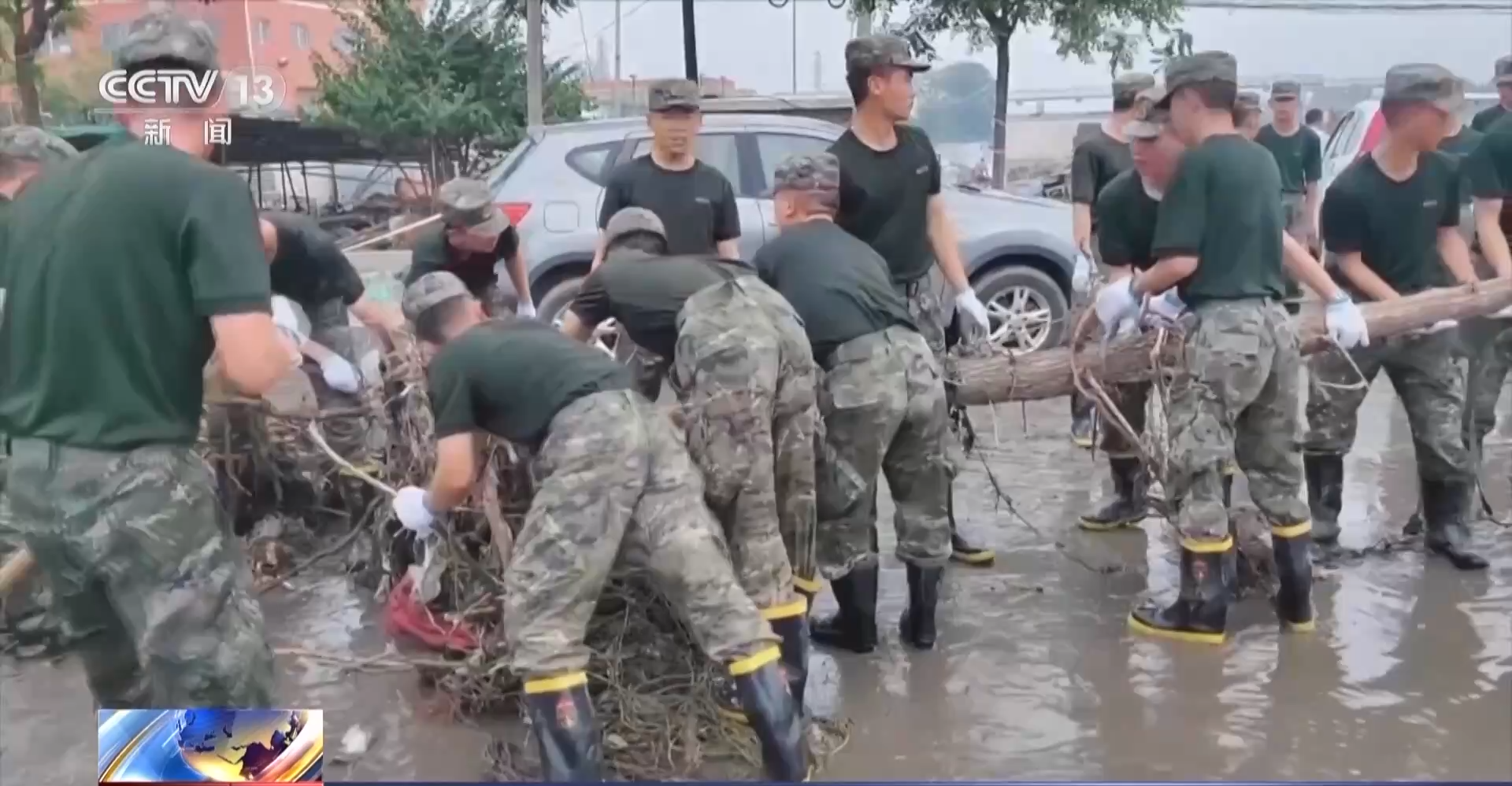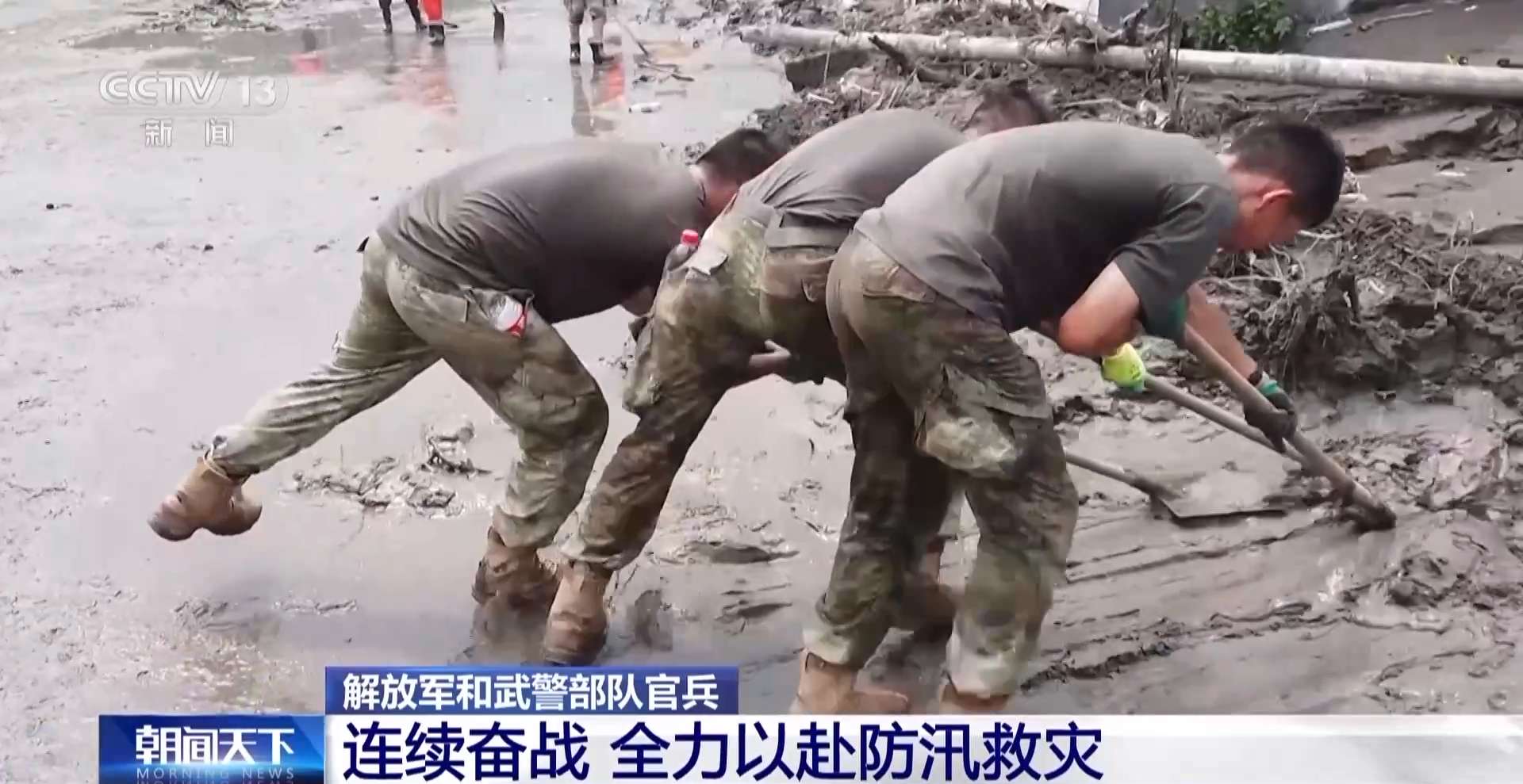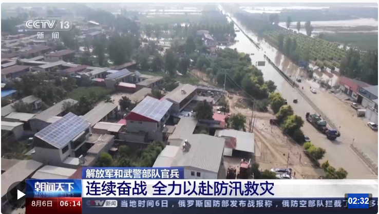 汛情就是命令。连日来,解放军和武警部队官兵紧急投入防汛救灾工作,全力搜救失联、被困人员,全力保障人民群众生命财产安全。在河北邢台,南和区部分村镇被淹,洪水退去后,大量泥沙沉积,部分村镇出现道路阻断。8月4日,中部战区陆军某部出动500名官兵,支援当地灾后清理工作。高温闷热的天气下,官兵们挥汗如雨,逐条道路对断枝杂物、沉积淤泥进行清理。