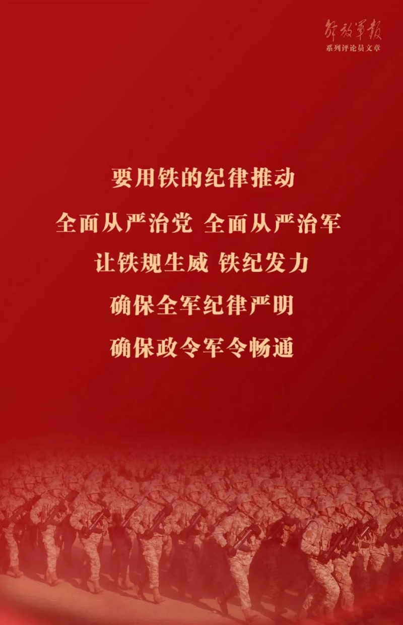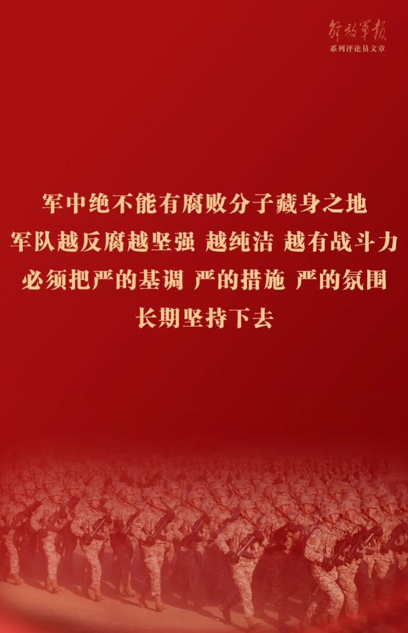 2022年6月,经中央军委批准,中央军委机关部门印发12个重点行业领域权力运行制约和监管规定,健全完善后勤、装备系统权力运行制约和监督体系,探索构建权力运行全流程、全领域、全方位监管格局。人民军队以永远在路上的坚韧执着,不断把正风肃纪反腐向纵深推进。