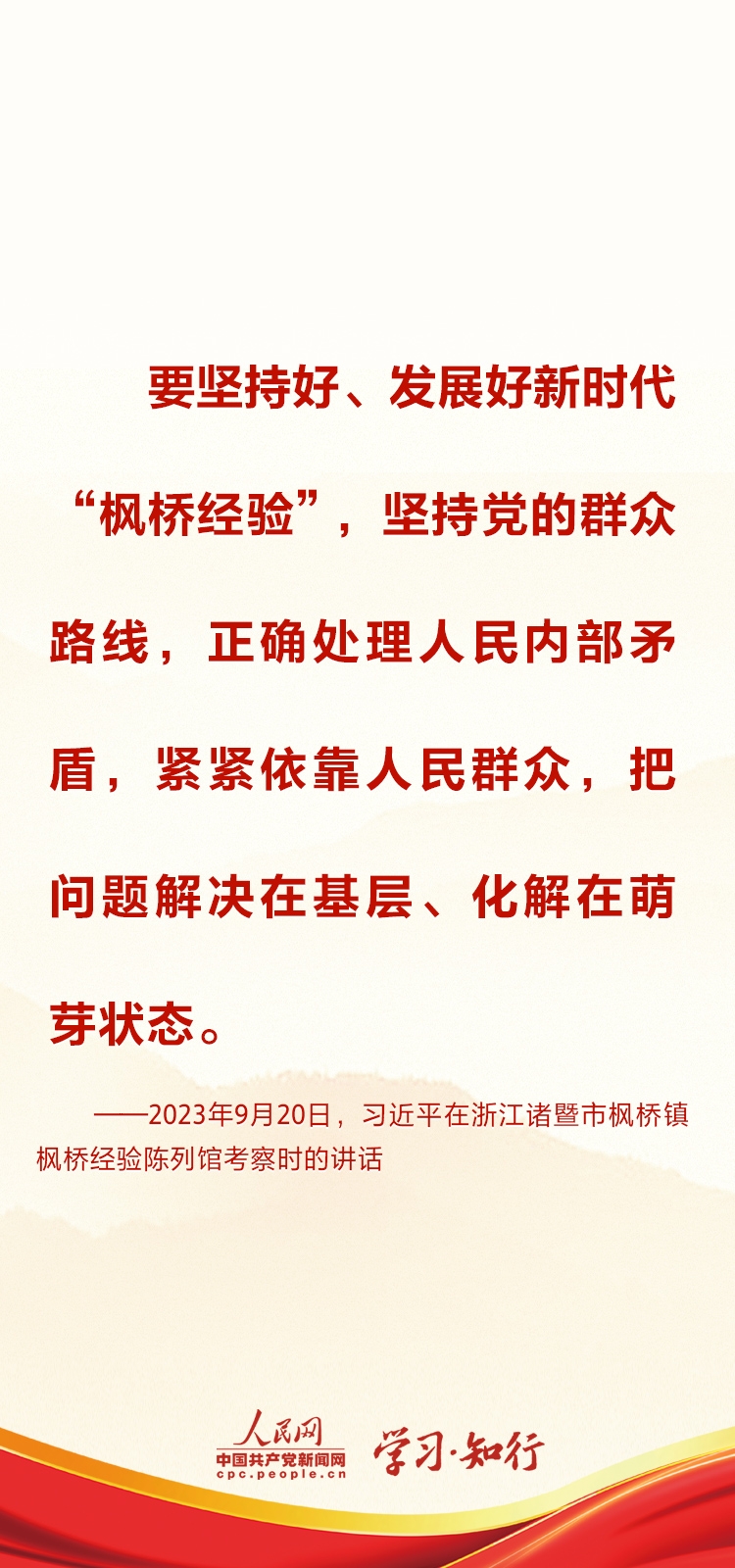 习近平多次对坚持和发展“枫桥经验”作出重要指示,推动新时代“枫桥经验”在基层社会治理中焕发勃勃生机。