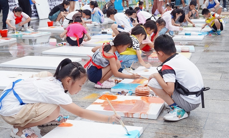 经过两小时的用心创作,100名学生全部完成了自己的绘画涂鸦艺术作品,现场一片五彩斑斓,在学生们满意的笑容映衬下,每一幅作品都绽放出耀眼的光芒。