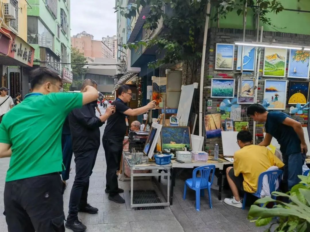 最后一站大芬油画村原本也是深圳众多客家村落的其中一个,经过30余年的发展,已成为年产值超40亿元的“中国油画第一村”,是全球最大的油画生产和出口基地。如今的大芬是各种艺术形态和谐共存、交相辉映的国际艺术街区。其绚烂的色彩、多元包容的艺术氛围也让媒体参访团惊喜不已。