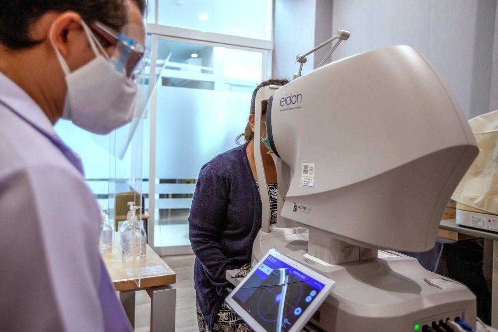 △2022年2月14日,在泰国曼谷诗里拉吉医院,一名医生操作5G自动验光仪为患者检查。2021年12月,5G智慧医院项目在诗里拉吉医院启动。