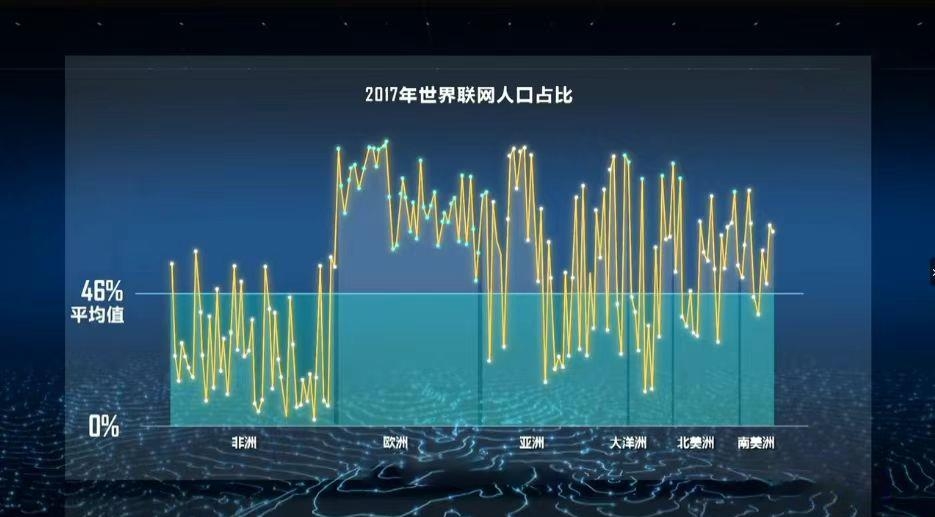 国际电信联盟的数据显示,到2017年时,世界仍有一半以上的人口还没有接入互联网。处于世界平均值以下的地区,大部分都是发展中国家。