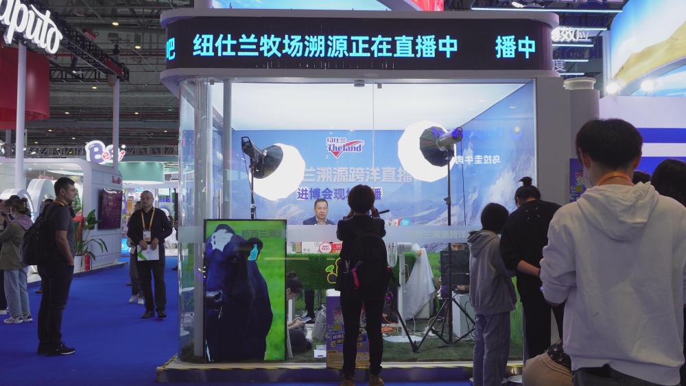新西兰乳企纽仕兰现场搭建的直播间正在推介今年的进博新品。