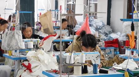 曹县某服装企业生产车间,工人正在赶制汉服。(视频截图)