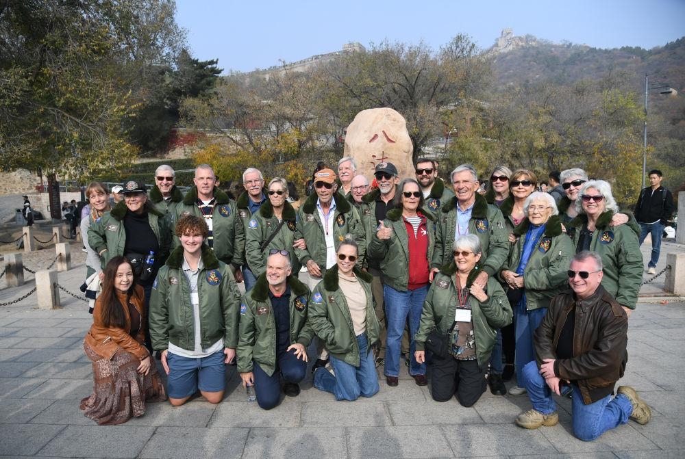 △2023年10月29日,美国飞虎队老兵莫耶一行人在北京八达岭长城合影留念。