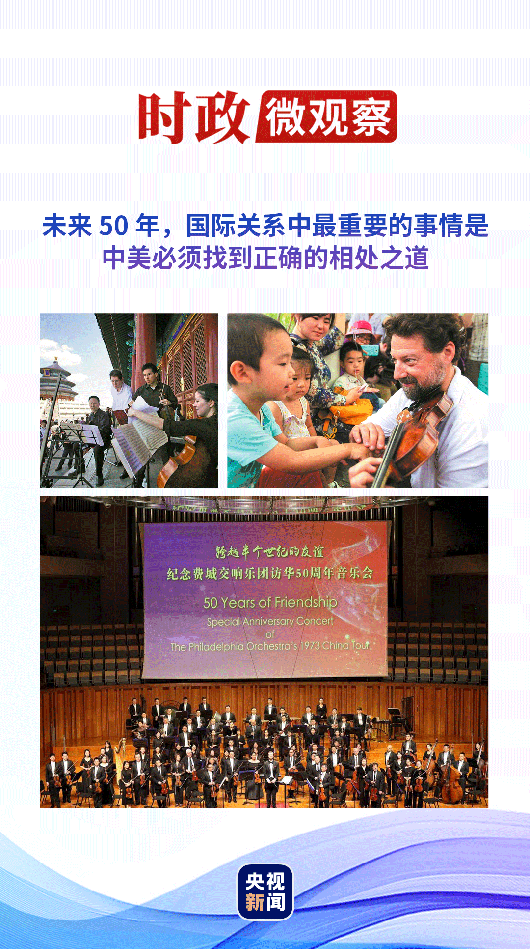 在复信中,习近平主席这样写道:50年后的今天,费城交响乐团和中国交响乐团及多国歌唱家一起在华演出,必将作为一段珍贵佳话载入史册。