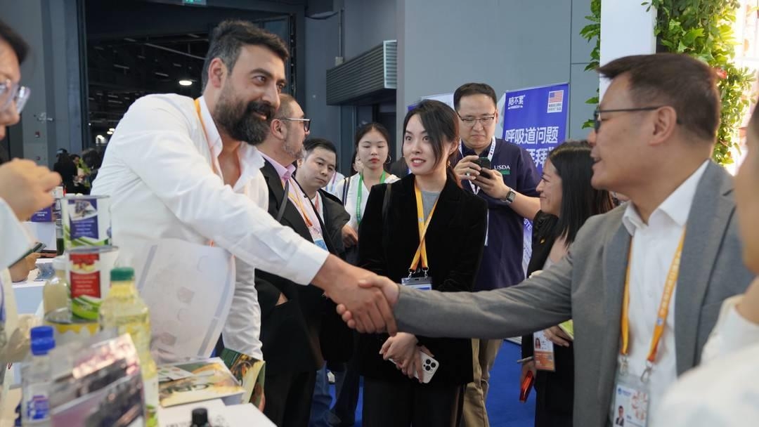 △第六届进博会上,国内一家超市行业的客商与来自美国佐治亚州的企业展商达成初步合作意向。