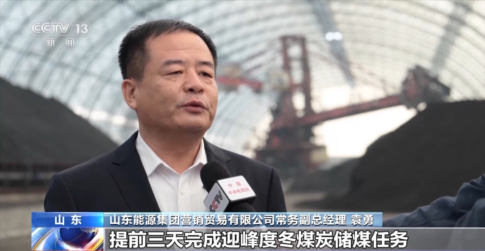 山东能源集团营销贸易有限公司常务副总经理 袁勇:提前三天完成迎峰度冬,煤炭储煤任务,可以保证50个大型电厂15天以上的使用量。
