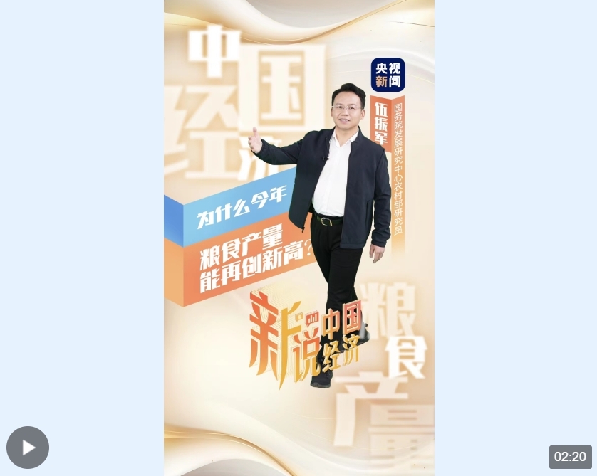 粮食安全是“国之大者”,中国人的饭碗任何时候都要牢牢端在自己的手上。《新说中国经济》带您看“丰收年”!