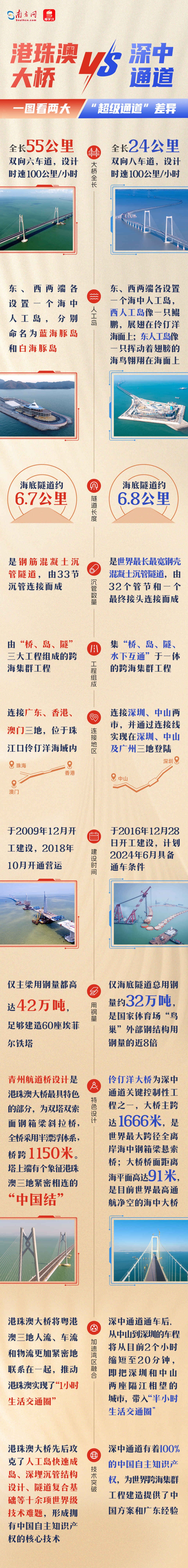 港珠澳大桥已成为粤港澳大湾区的地标性建筑,伶仃洋上一道亮丽的风景线。在它不远处,另一跨海“超级工程”的建设也备受瞩目——今年11月28日,深中通道主线全线贯通,标志着这条连接深圳至中山的跨海通道正式进入冲刺通车建设阶段。未来它们将在粤港澳大湾区居民的工作、生活中发挥越来越重要的通道与纽带作用。