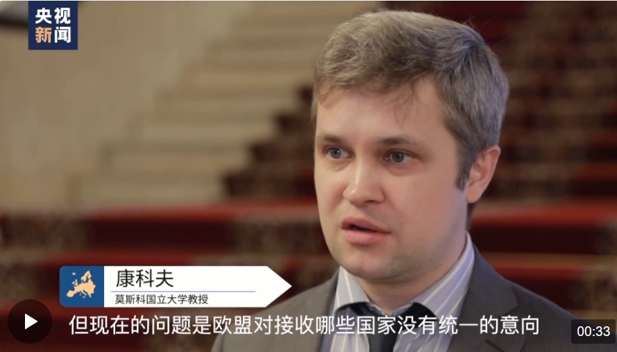 俄罗斯莫斯科国立大学公共管理学院政治分析学副教授 康科夫:开启入盟谈判是可以理解的措施,但现在的问题是欧盟对接收哪些国家没有统一的意向。土耳其就是个典型的例子,土耳其成为候选国的时间最长。目前欧盟的举动更像是政治宣言。目前欧盟开展内部的政治对话远比与乌克兰入盟谈判重要。