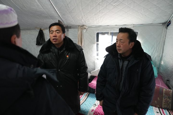 在柳沟乡斜套村,一名面色黝黑的中年男子在帐篷中不停穿梭,一会儿帮这个帐篷生火,一会儿照看另一个帐篷里的孤寡老人……看到有孩子在炉子旁玩火,他立即劝止,并到各个帐篷里提示安全事项。