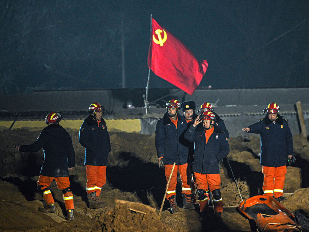 2023年12月21日,救援队员在青海省海东市民和回族土族自治县中川乡金田村现场救援。新华社记者 张龙 摄