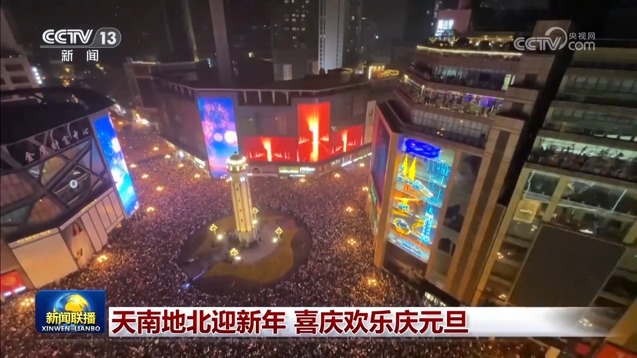 跨年夜,神州大地一派欢乐。在北京,新年倒计时主场活动在首钢园举行,精彩纷呈的光影秀、灯光雕塑、文艺表演等,将园区变成了欢乐的海洋。在江西南昌,充满科技与未来感的灯光秀,在城市楼宇间变幻出一幅幅美丽的画卷。在海南海口、安徽芜湖,数百架无人机摆出各种欢度节日的字样和图案,喜迎新年的到来。在重庆解放碑中央广场,众多市民和游客共同聆听新年钟声,许下美好的新年愿望。