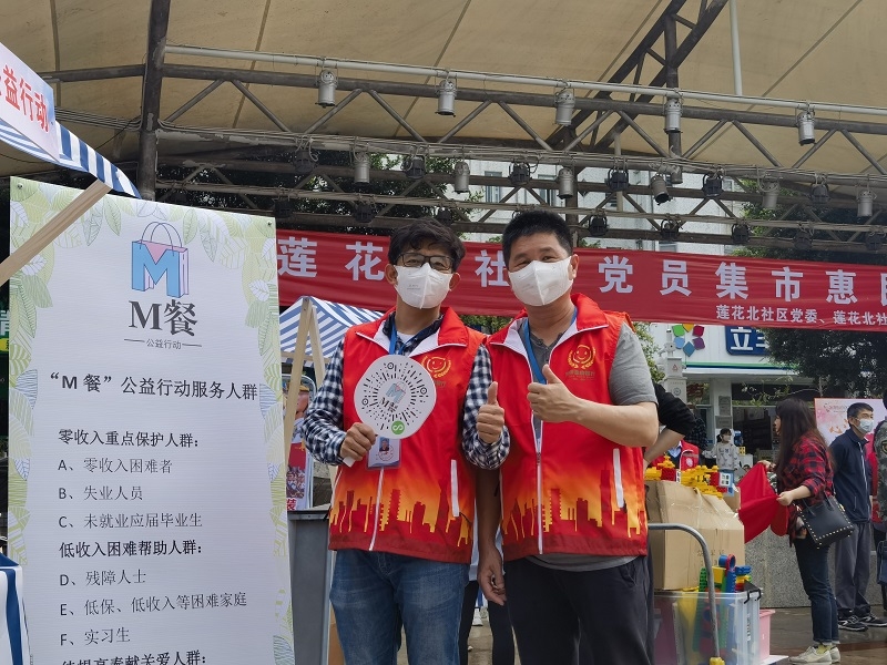 为了让更多人参与到“M餐”公益行动中,福田区全力发动爱心企业、个人,参与“M餐”公益行动,引导“M餐”参与企业立足自身营业性质,根据自身营业时间,捐赠一定数量预包装食品、熟食等餐食,为临时困境群众提供线上一键预约领取餐食。目前,爱心餐饮企业由最初的4家发展到60家,包括乡吧啦乡土菜馆、客乡缘田园饮食、潮香品味餐饮等爱心餐饮企业,覆盖全区10个街道,目前在谈意向商家15家。同时,福田区成立“守善公益”志愿服务队,通过党员服务市集和志愿深圳平台面向全市招募志愿者,目前有34名志愿者常态参与项目日常服务行动,逐渐形成可持续的公益生态圈。