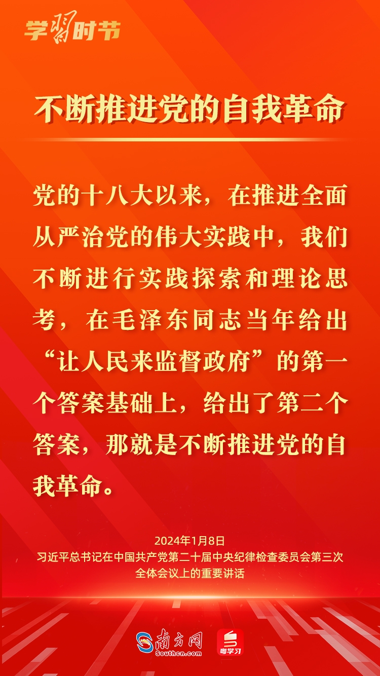 1月8日,中共中央总书记、国家主席、中央军委主席习近平在中国共产党第二十届中央纪律检查委员会第三次全体会议上发表重要讲话,深刻阐述党的自我革命的重要思想,对持续发力、纵深推进反腐败斗争作出战略部署。