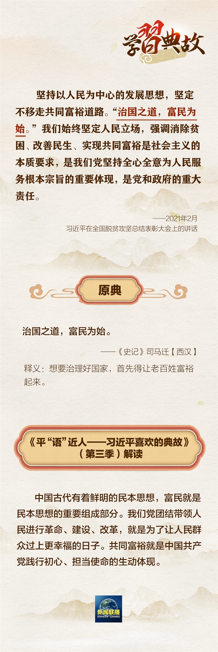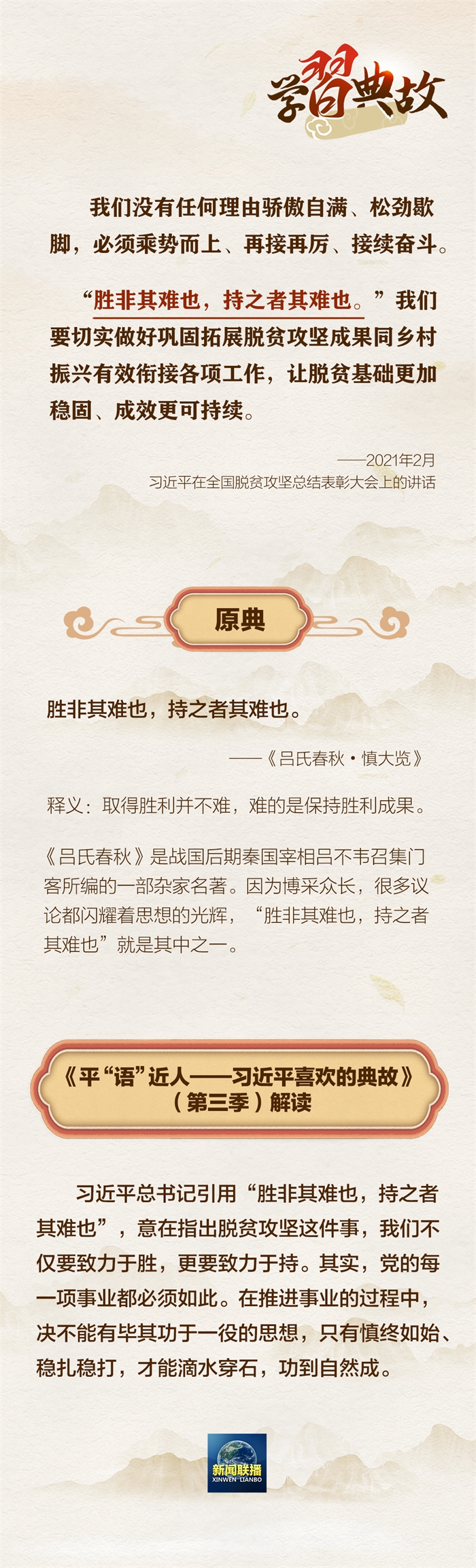 2月21日,《平“语”近人——习近平喜欢的典故》(第三季)播出第五集《风物长宜放眼量》。