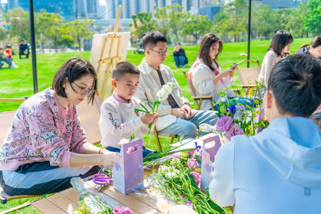 除了插花活动外,现场将特色市集和创意活动引进开明公园,吸引市民共同参与,多样生活配套互动环节,让市民在户外体验乐趣。