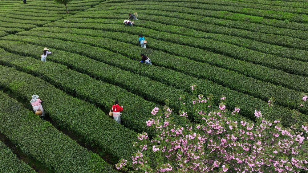 近期,贵州省余庆县松烟镇二龙村万亩茶园里,樱花竞相绽放。近年来,当地茶园变公园、茶区变景区、茶山变金山,茶旅融合带动当地发展。贵州省余庆县松烟镇玉河茶庄民宿负责人张瑜说,“这几天生意很火爆,采茶的、赏花的人特别多,住宿都是满的。”