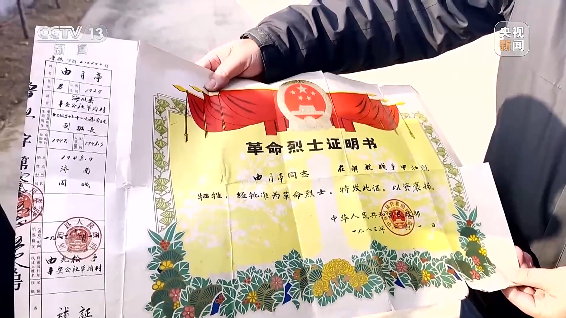 由月亭烈士儿子 由兆松:一生没有父亲,看到就想到我父亲,所以不敢看。我奶奶活着的时候,这个烈士证我都掖着藏着,不让我奶奶看见。我听我奶奶说,那个时候年轻人去当兵,我父亲是第一个报名参军,我父亲也是一个独子。