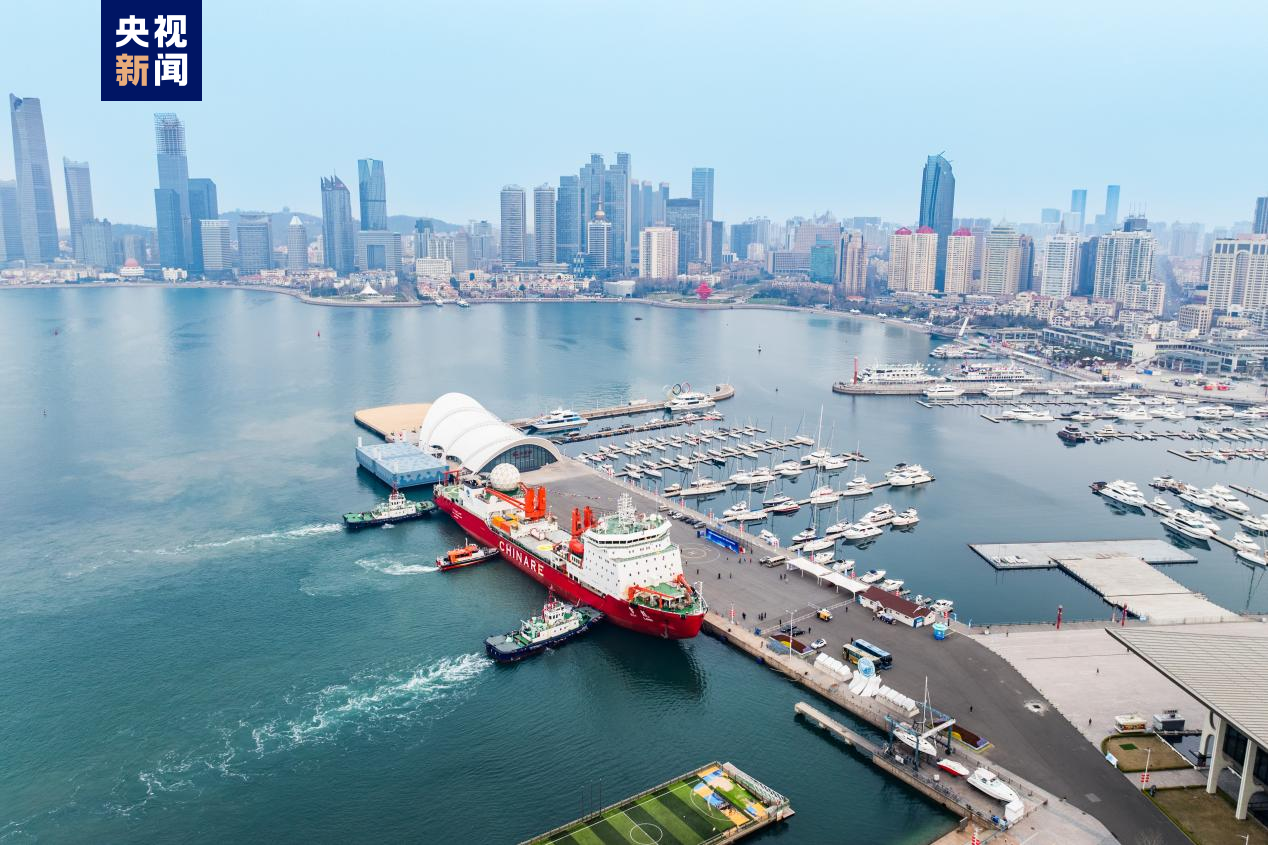 4月10日6时26分,“雪龙”号极地考察船停靠山东青岛,标志着由自然资源部组织的中国第40次南极考察圆满结束。