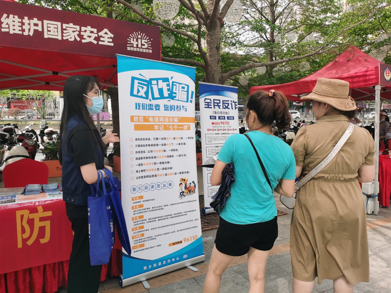 为贯彻总体国家安全观,加强辖区国家安全法治宣传教育,增强居民国家安全意识和素养,形成维护国家安全的强大社会共识。4月15日,西乡街道在人流密集的核心商圈大仟里购物中心开展“4·15全民国家安全教育日”主题宣传暨反诈反恐反走私集中宣教活动。